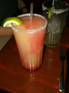 I began the evening with a pomegranate margarita (12 oz). While I was drinking, I wasn’t feeling much of a buzz, so I decided to move on to bigger and better things. I then ordered a strawberry-coconut 20 oz margarita- but by the time it arrived, I had begun to feel buzzed by the first one. I left there very, very drunk. I highly endorse their margaritas. Just don’t drive after drinking them, mmkay?